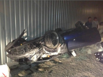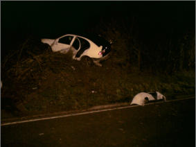Das andere Auto, in dem neben dem Fahrer noch zwei junge Frauen waren, schleuderte in den Strassengraben, ueberschlug sich und blieb mitten auf der Strasse auf dem Dach