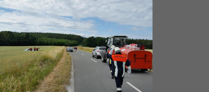 Beim Eintreffen der Feuerwehr Schornweisach, stand das Unfallfahrzeug einige Meter im Getreideacker. Der Fahrer sowie evtl. Insassen des